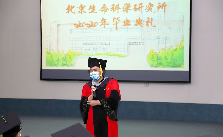 王晓东所长在典礼上致辞,表达了对毕业生们的祝贺。王所阐述了2020年新冠疫情爆发后,更凸显了科研的重要性。希望大家带着NIBSer“追求卓越,勇于创新”的标志,不忘初心,为科研做出更大的贡献。