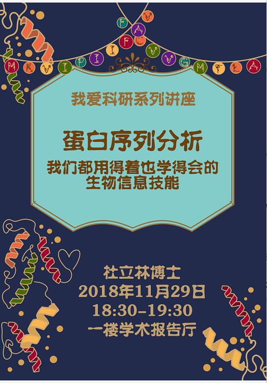 “我爱科研”系列讲座第五期 ——《蛋白序列分析—我们都用得着也学得会的生物信息技能》
