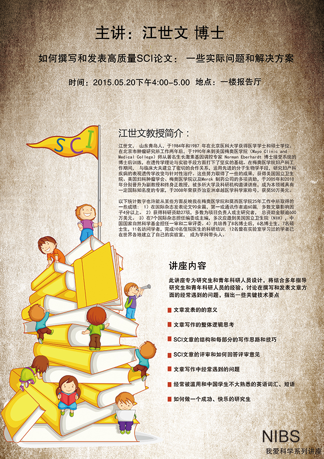 “我爱科研”系列讲座——如何撰写和发表高质量SCI论文: 一些实际问题和解决方案