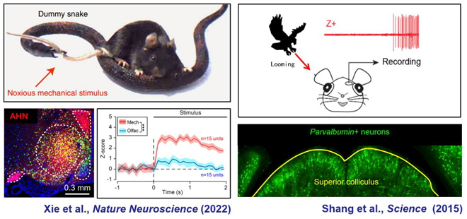17. Congping Shang, Zijun Chen, Aixue Liu, Yang Li, Jiajing Zhang, Baole Qu, Fei Yan, Yaning Zhang, Weixiu Liu, Zhihui Liu, Xiaofei Guo, Dapeng Li, Yi Wang,Peng Cao. Divergent midbrain circuits orchestrate escape and freezing responses to looming stimuli in mice.Nature Communications9: 1232 (2018)
