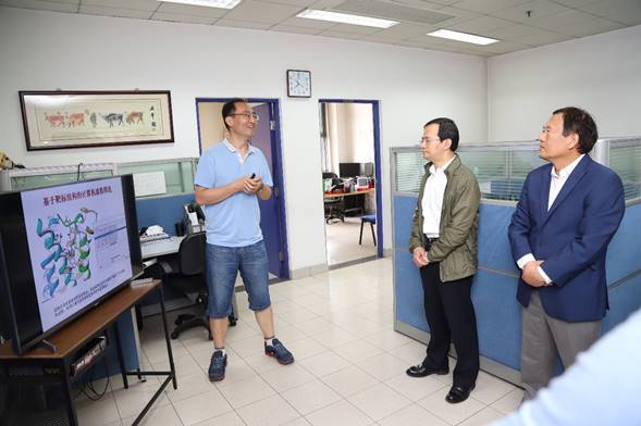 随后一行人实地考察了黄牛实验室,听取了黄牛博士关于实验室研究的最新进展及取得成果的介绍。