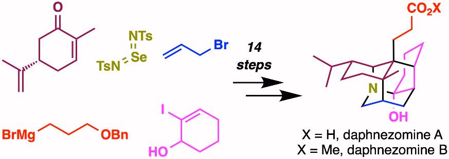 李超实验室(www.lichaolab.com)在《Journal of the American Chemical Society》杂志上在线发表题为“Total Synthesis of (—)-Daphnezomines A and B”的研究论文。该论文首次报道了两个复杂虎皮楠类天然产物(—)-Daphnezomines A和B的简洁全合成工作。