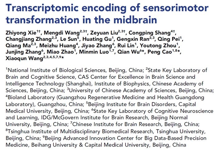 的曹鹏研究员和中科院生物物理研究所的王晓群研究员。曹鹏课题组的博士后谢志勇、王晓群组博士研究生王梦迪和刘泽源、广州生物岛实验室的尚从平研究员是研究论文的共同第一作者。这项研究也得到了北京脑科学与类脑研究中心罗敏敏实验室的大力支持,罗敏敏实验室自主开发的稀疏标记技术为这项研究提供了很大的支持和帮助。该研究得到了国家重点研发计划、国家自然科学基金、中国科学院战略性先导科技专项等基金项目的支持。