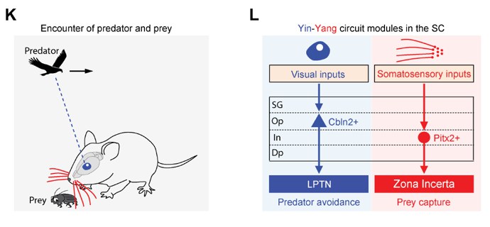 上丘Cbln2+和Pitx2+神经元是躲避天敌和捕食猎物本能行为所必须的