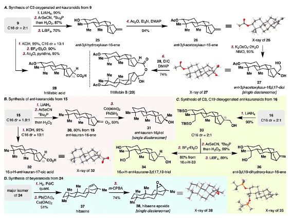 图8. 对映-贝壳杉烷和贝叶烷的集群式合成