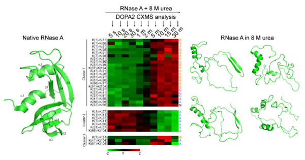 图2.通过DOPA2交联质谱技术分析RNaseA在8M尿素中的变性过程。
