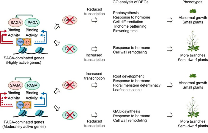 图2:PAGA和SAGA协同调节基因转录和植物发育