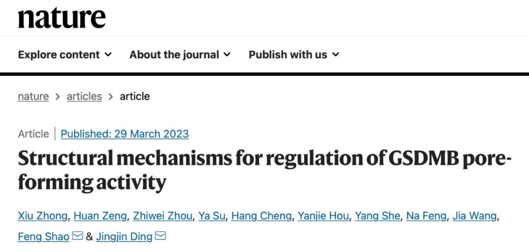 邵峰团队的合作研究在Nature在线上发表了题为“Structural mechanisms for regulations of GSDMB pore-forming activity”的论文,破解了GSDMB可变剪接调控细胞焦亡活性的分子机理。