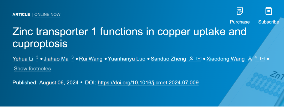 的王晓东实验室与郑三多实验室合作,在《Cell Metabolism》上发表题为“Zinc transporter 1 functions in copper uptake and cuproptosis” 的研究论文。该项研究首次发现并证明了Zinc transporter (ZnT1)作为新型的铜离子转运蛋白,介导铜离子进入细胞并诱发铜死亡,并阐述了ZnT1 在肠上皮细胞中通过介导铜离子吸收,维持肠上皮Lgr5阳性干细胞稳态。该研究还为临床上用锌离子治疗铜过量引起的威尔逊氏疾病,提供了理论依据。