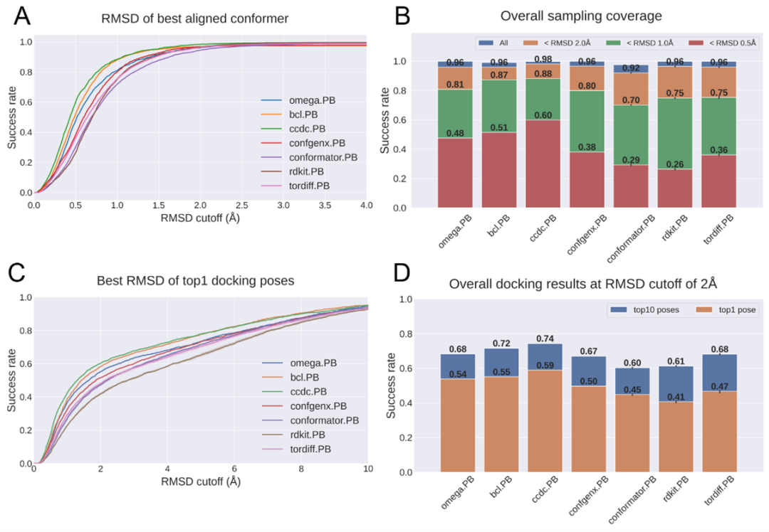 在计算化学领域,“小分子构象采样”便是这样一个看似不起眼的小问题,甚至被部分从业人员认为是“已解决的科学问题”。在过去的十数年间,基于结构的虚拟筛选已被广泛应用于药物筛选的早期阶段。通过分子对接这种方式,可以快速高效地评估配体-受体的相互作用,处理规模高达 10⁹ 的化学分子库,对于发现潜在的结构多样的先导化合物具有重要意义。其中,小分子构象采样为评估化学小分子与受体的相互作用赋予了必要的柔性,对虚拟筛选的成功率有着显著影响。目前,已有多种构象采样方法在“晶体结构构象再现”任务中表现优异,并获得了广泛认可。但这些方法的多样性和准确性在实际应用中,尤其是“虚拟筛选分子对接”任务中,缺乏系统的测试和比较,这一情况限制了研究人员对这些方法的选择和使用,成为一个亟待解决的“小问题”。