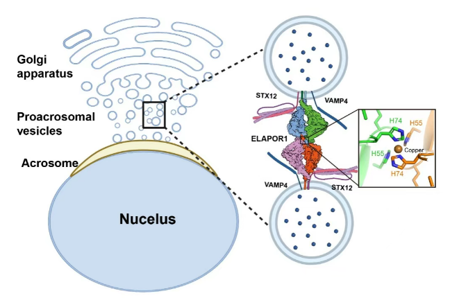 综上所述,本研究阐明了ELAPOR1在顶体发生中的双重角色:一方面通过铜离子依赖的头对头的同源相互作用介导PAVs的拴系,另一方面通过与SNARE蛋白STX12的协作,进一步调控膜融合进程,该机制的揭示不仅深化了我们对精子顶体发生的分子理解,也为人类男性不育症尤其是圆头精子症的研究与潜在治疗提供了重要线索。